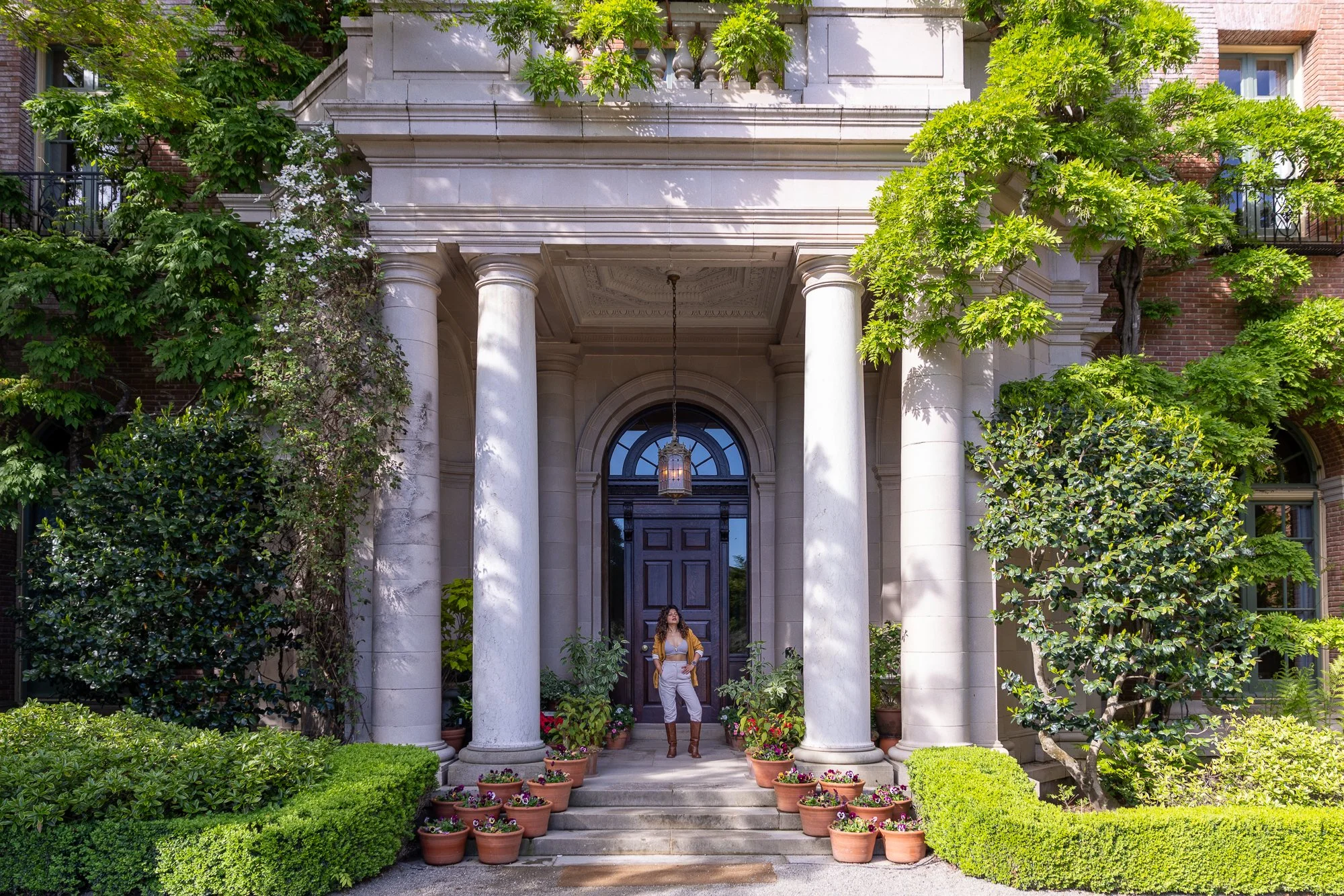 We'll wander through the sunken garden, past tulip beds and the wisteria-draped pergola, pausing wherever the light falls perfectly through the formal hedgerows. The manor house and reflecting pool give us a dozen distinct backdrops within a single morning walk.